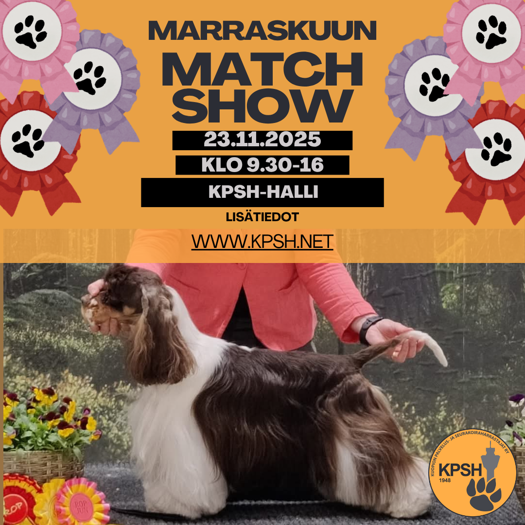 KPSH järjestää Match Shown eli leikkimielisen koiranäyttelyn KPSH Hallissa osoitteessa Kylmämäentie 1, Kuopio. KPSH Halli on puolilämmin +15C, keinonurmipohjainen halli, jossa on vesipiste ja WC.…